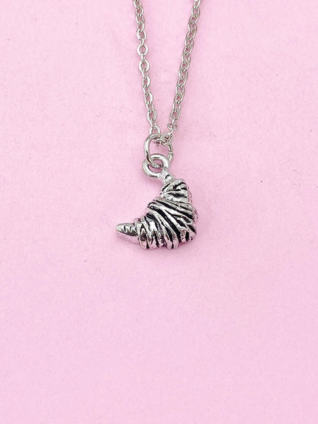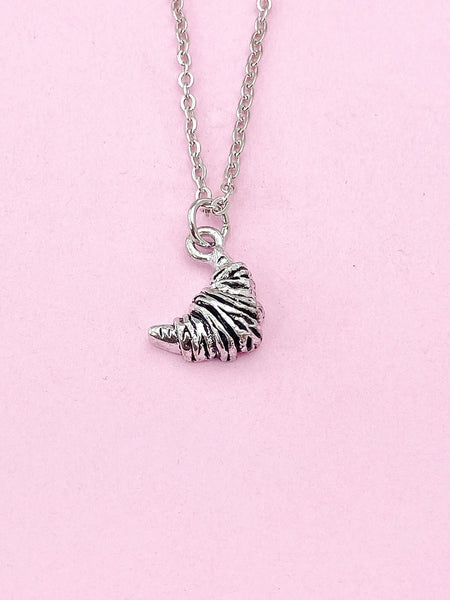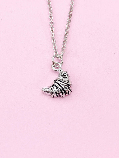 This is a silver-tone croissant charm on tarnish resistant stainless-steel chain.