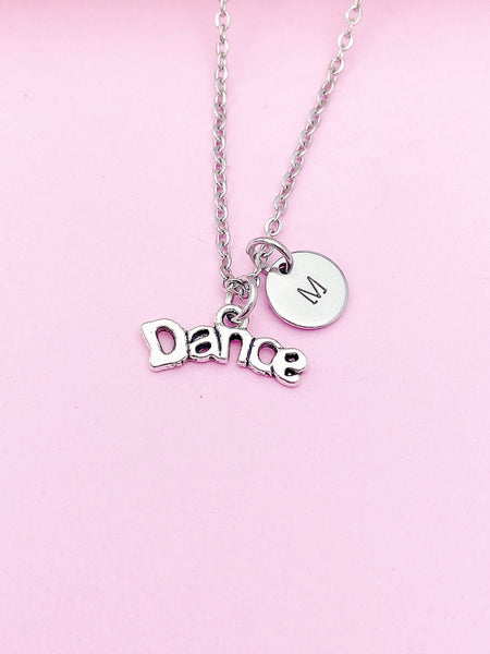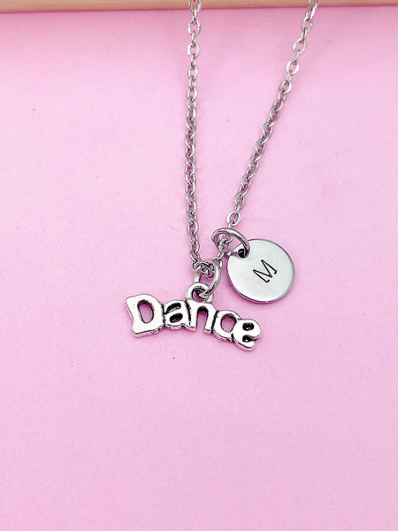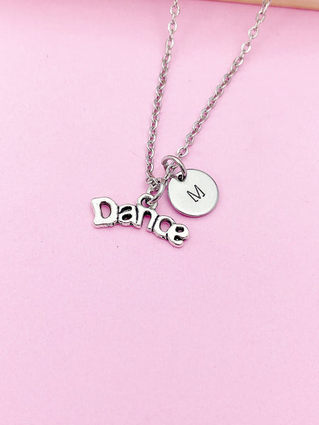This is silver tone dance charm with hand stamped initial charm on brass/stainless steel 18 inches chain.