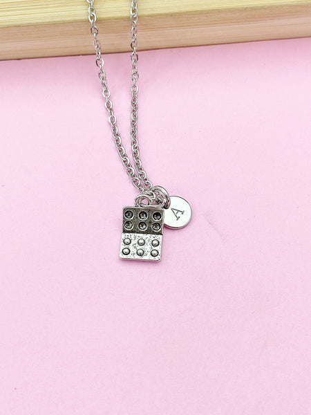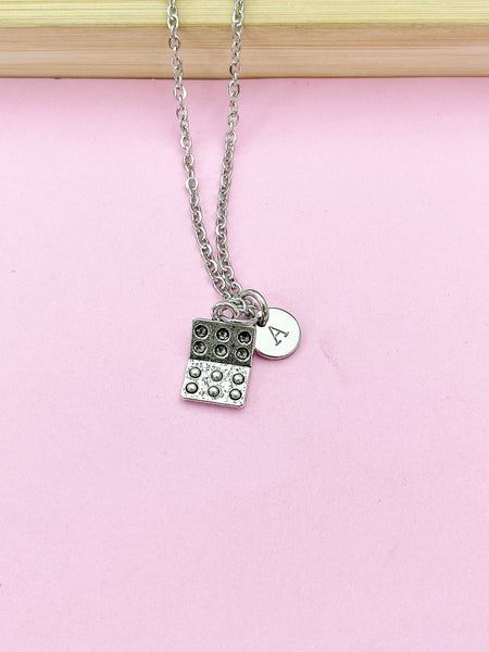 This is a silver-tone eggs carton charm with hand stamped initial charm on brass or tarnish resistant stainless-steel chain.