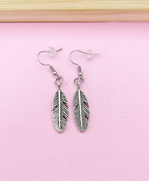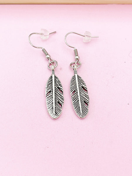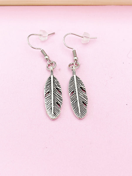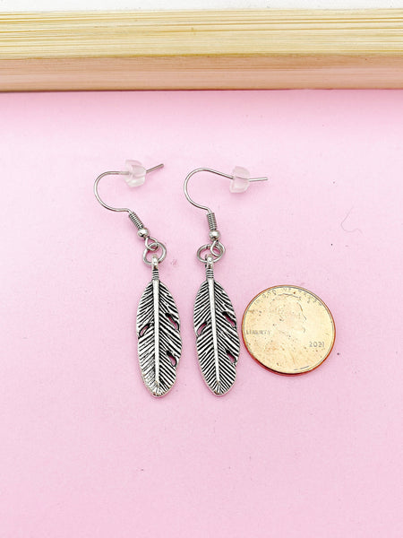 ♥ Feather, Tibetan Style Alloy Pendants, Lead Free & Cadmium Free & Nickel Free, Antique Silver, Size: about 9mm wide, 30mm high, 2mm thick