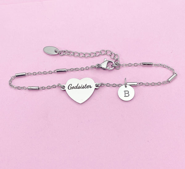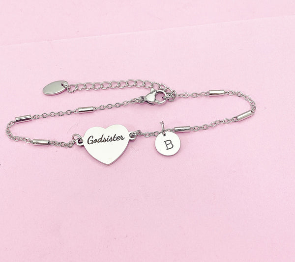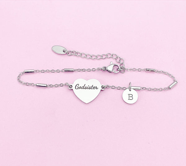 Silver Godsister Gifts, Gold Godsister Bracelet, Heart, Godsister Jewelry, Mother's Day Gift, Godsister Sister Gifts, D455A