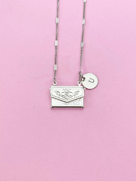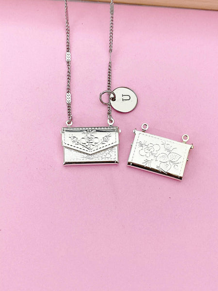 This is Brass Locket Pendants charm with hand stamped initial charm on stainless-steel chain.