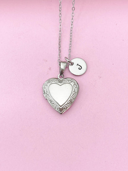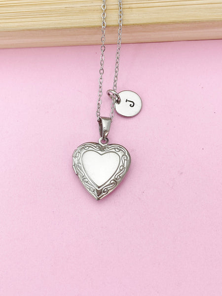 Silver Heart Locket Necklace, Stainless Steel Heart Locket Gift, Valentine Gift, Birthday Gift, Personized Initial Necklace, N5032