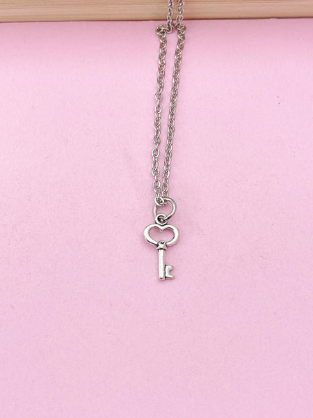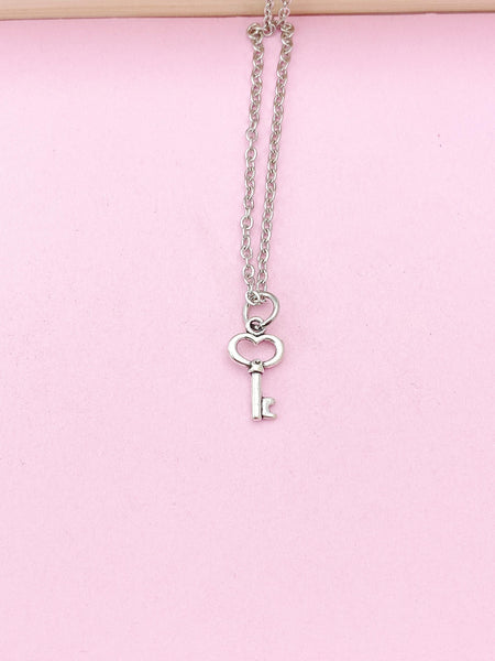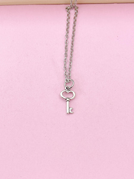 This is a silver-tone Skeleton Key charm on tarnish resistant stainless-steel chain.