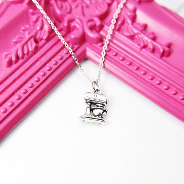 This is silver-tone alloy SMALL mixer charm on a stainless steel chain. (Hypoallergenic) Tarnish Resistant!