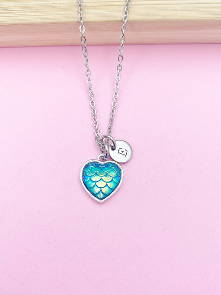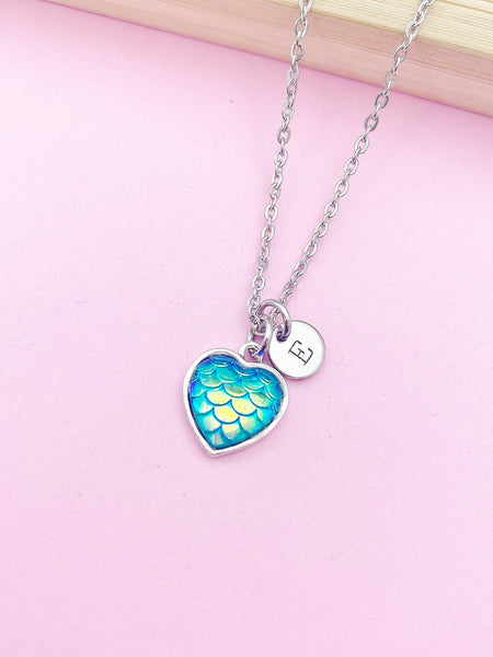 Silver Mermaid Scale Heart Charm Necklace Fairytale Fantasy Girl Gift Idea Personalized Customized Jewelry, N201