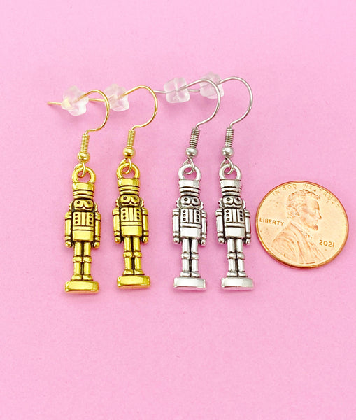 These are gold or silver-toned Soldier charm on stainless steel ear hooks.
