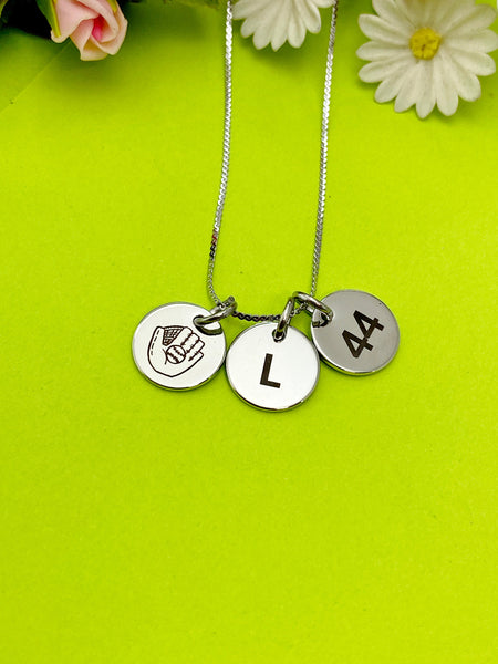 This is a unique engraving Baseball mitten, number and initial charm on stainless steel 18 inches necklace chain.