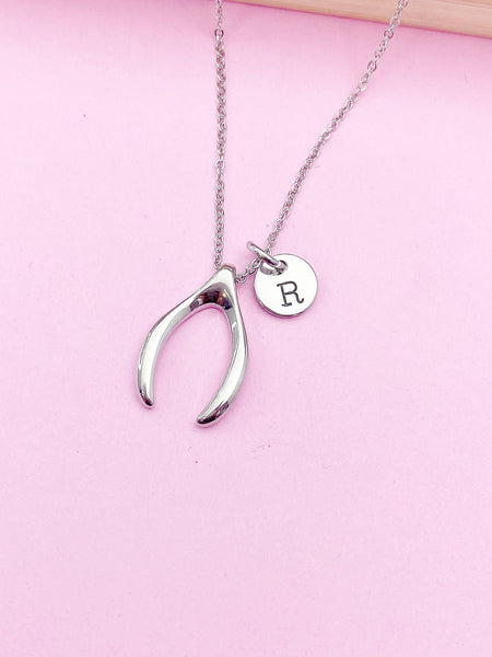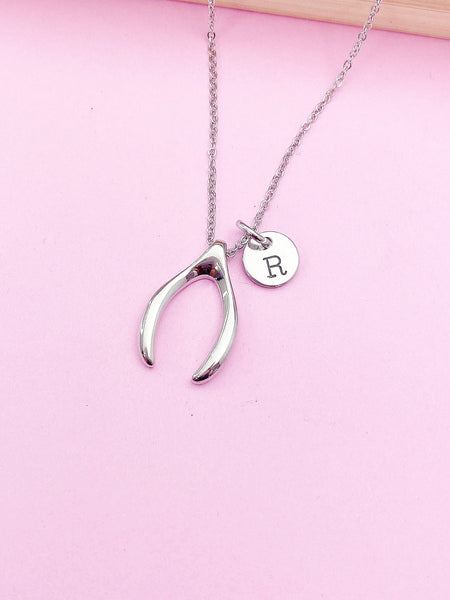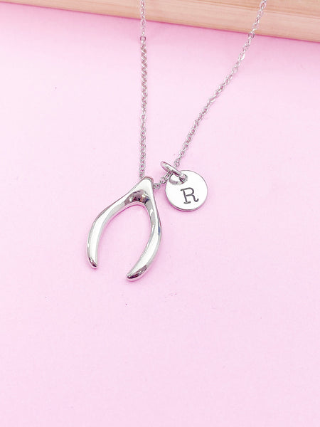 Silver or Gold Wishbone Charm Necklace Luck Gift Ideas Personalized Customized Monogram Made to Order Jewelry, N574