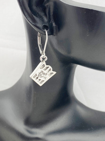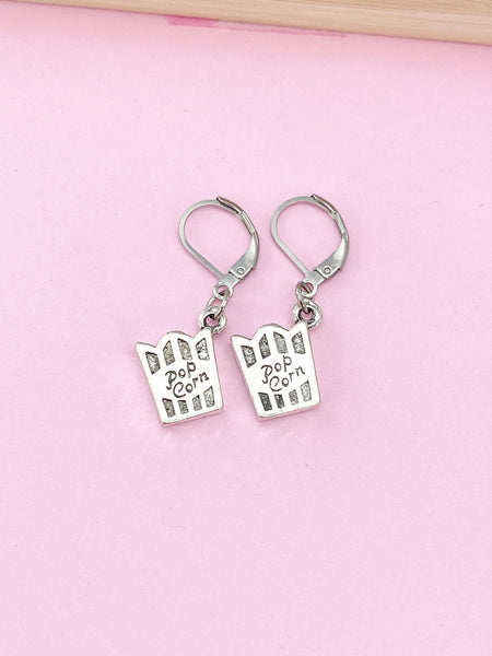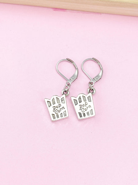 This is a silver - tone Popcorn charm on Stainless Steel Lever back Earring Findings.