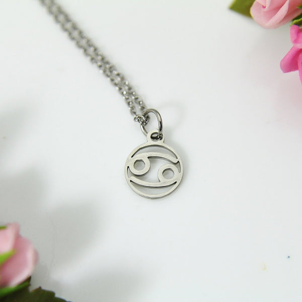This is a stainless steel Cancer charm on a stainless steel chain. (Will NOT TARNISH or GREEN)