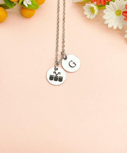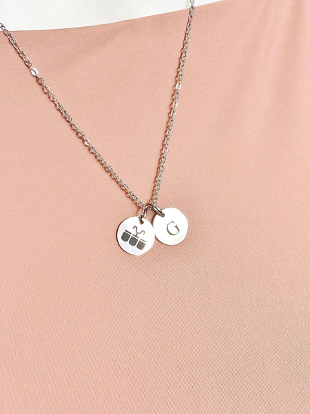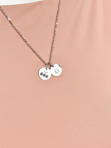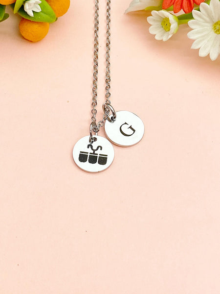 This is a unique engraving Tenor Drum and initial charm on stainless steel 18 inches necklace chain.