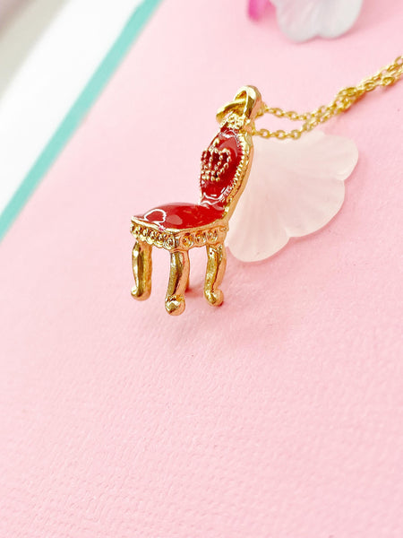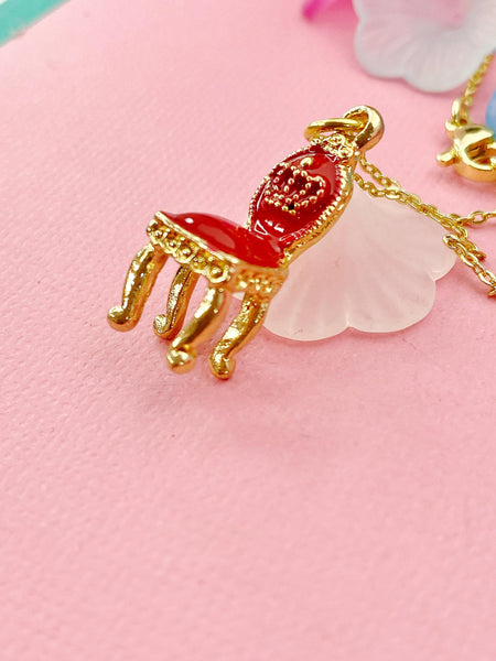 ♥ Chair, Alloy Enamel Pendants, Golden, Red, Size: about 10mm wide, 25mm long, 9mm thick or 0.98x0.39x0.35inch