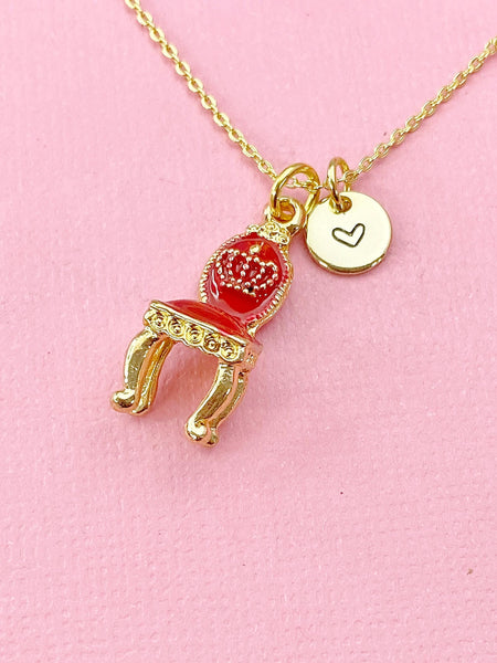 This is a gold -tone chair charm with hand stamped initial charm on brass /stainless steel 18 inches chain or keyring.