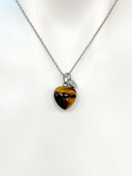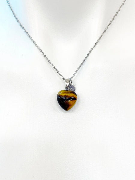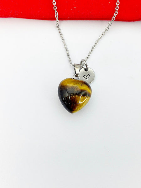 This is a Tiger eye pendant with hand stamped initial charm on stainless steel 18 inches chain.