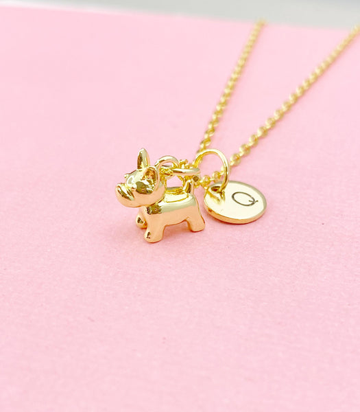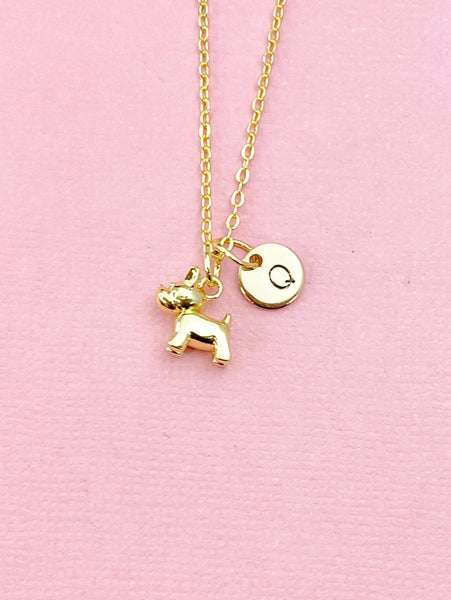This is a gold -tone TINY dog charm with hand stamped initial charm on brass/stainless steel 18 inches chain or bracelet or keyring.