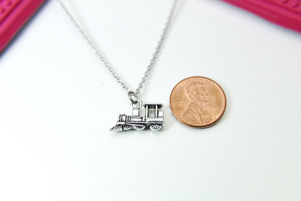 Silver Train Locomotive Charm Necklace, Steam Train Charm, Steam Engine Train Charm, Streamliner Charm, Personalized Customized,