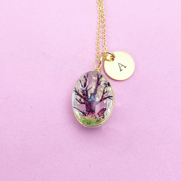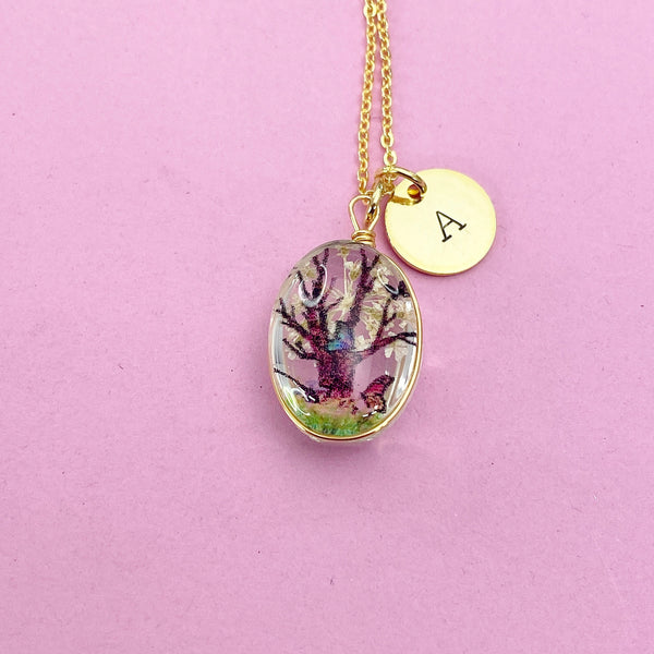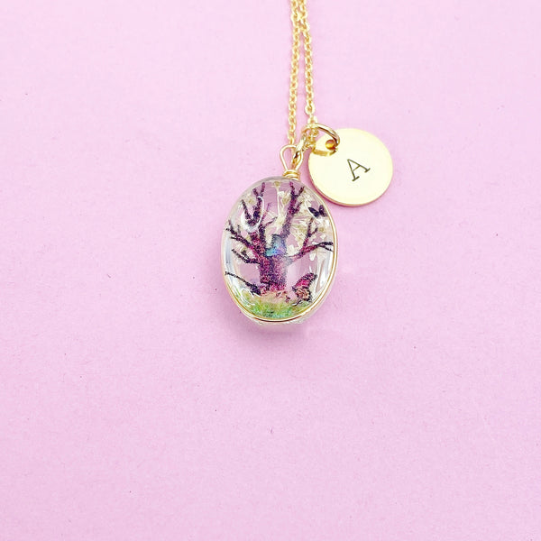 Tree Charm Necklace, Gold Pressed Flower Necklace, N2350
