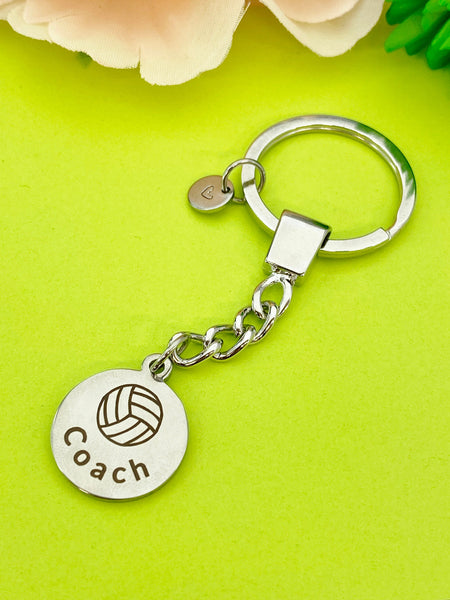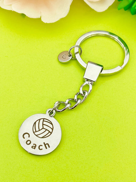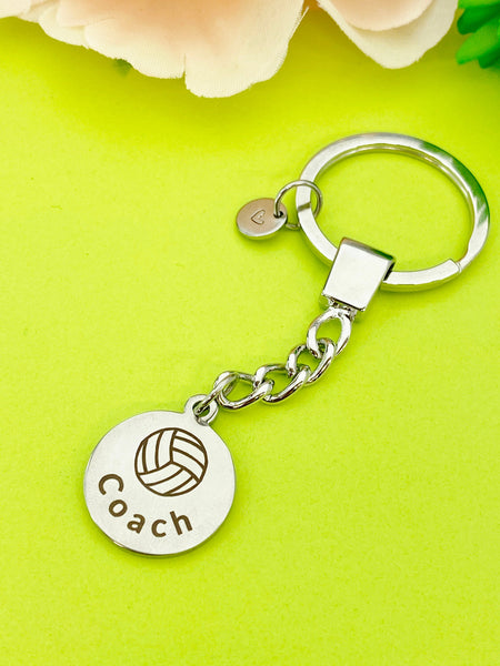 This is an engraving Volleyball Coach on stainless-steel with hand stamped initial charm on keyring.