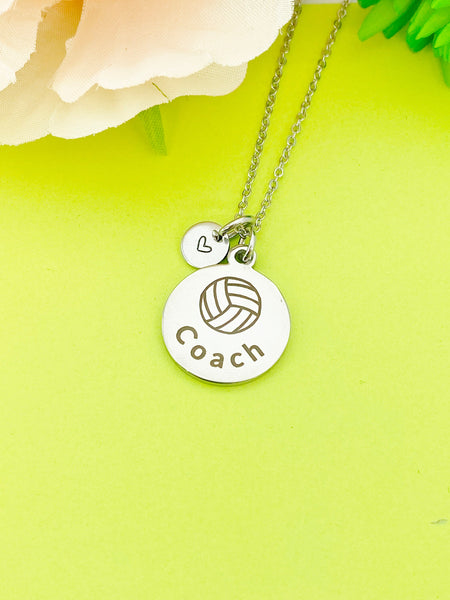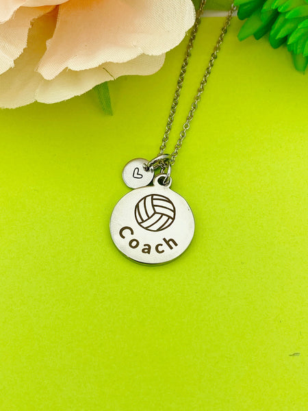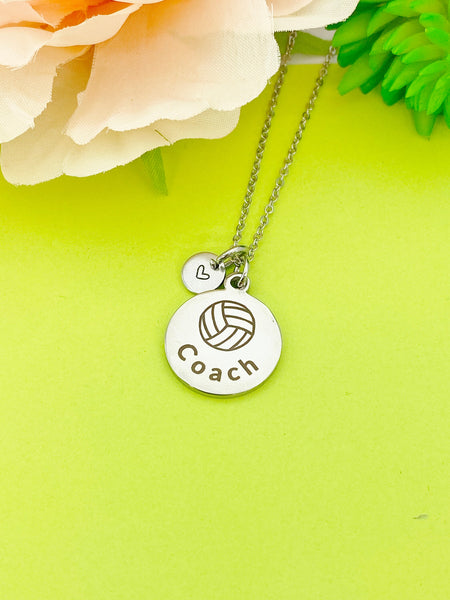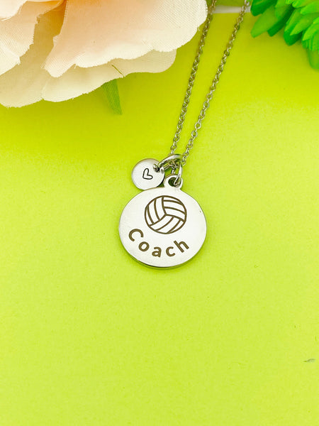 This is an engraving Volleyball Coach on stainless-steel with hand stamped initial charm on 18 inches chain.