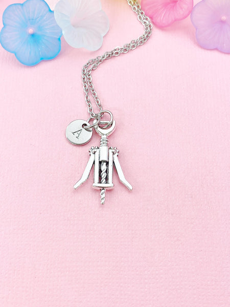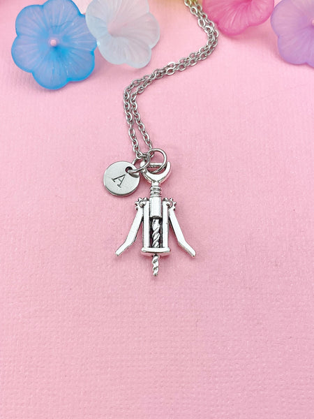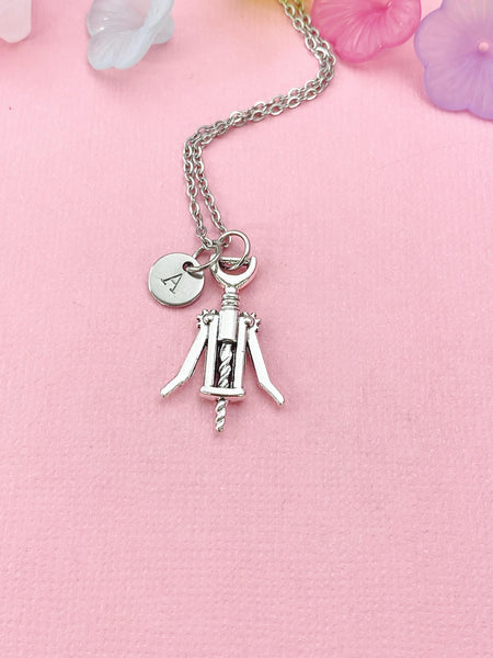 This is silver-tone alloy Corkscrew charm with hand stamped initial charm stainless steel 18 inches chain or bracelet or keyring.
