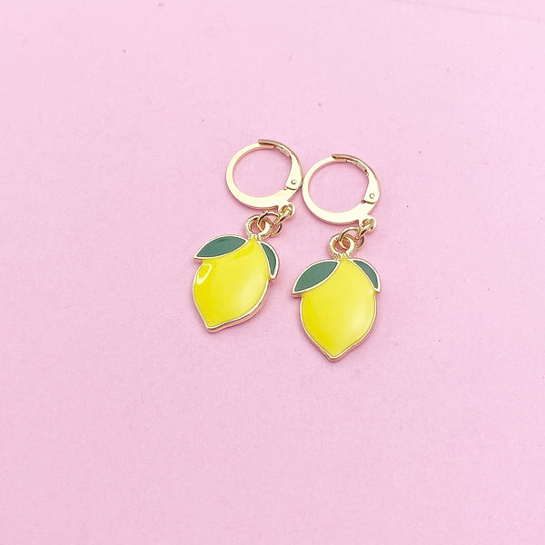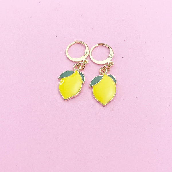 Yellow Green Lemon Earrings, Gold Lemon Lime Earrings, N4753B