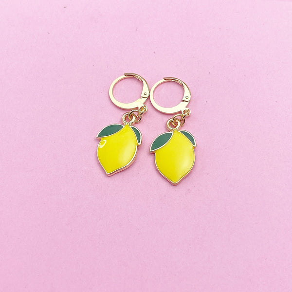 ♥ Yellow Green Lemon, Gold Plated Alloy Enamel Pendants, Lead & Nickel Safe, approx. 21mm x13mm (7/8" x 4/8")