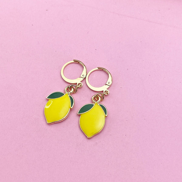 These are gold-toned Yellow Green Lemon on stainless steel ear hooks.