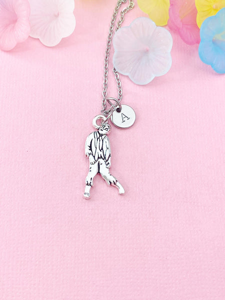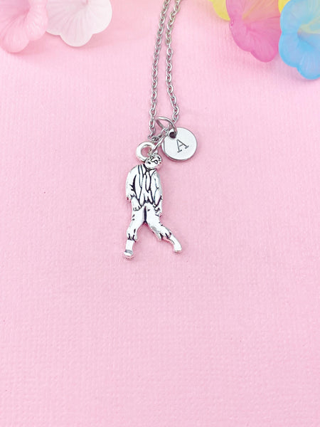 This is a silver -tone zombie charm with hand stamped initial charm stainless steel 18 inches chain or bracelet or keyring.